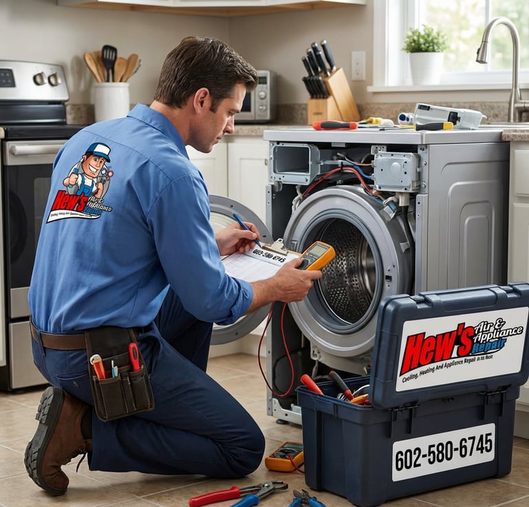 At Hew's Air & Appliance Repair LLC, we specialize in repairing washers, dryers, refrigerators, ovens, microwaves, and dishwashers throughout the Phoenix metropolitan area. Your satisfaction is our priority.
